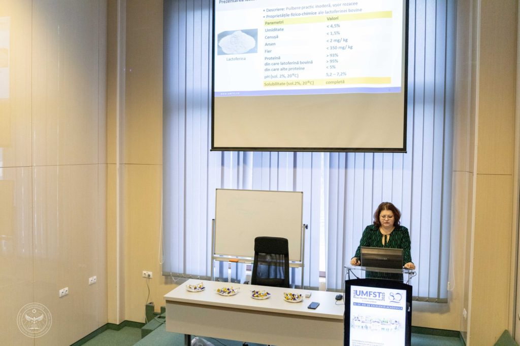 Lactoferina între beneficii și riscuri, un workshop științific organizat în cadrul Zilelor UMFST și dedicat actualizărilor legislative și dovezilor privind utilizarea lactoferinei în produse alimentare, farmaceutice și cosmetice, precum și principiilor de nutrivigilență.