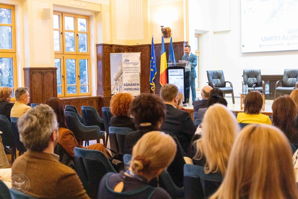 Absolvenți, studenți și cadre didactice au fost prezenți la prima ediție UMFST Alumni Summit, un eveniment organizat în cadrul Zilelor UMFST și dedicat dialogului deschis despre parcursuri profesionale, reușite și momente memorabile.